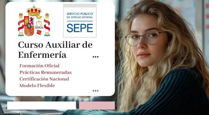 - Cursos organizados por SEPE y FUNDAE: formación en modalidad presencial u auxiliar de enfermería online homologado, con apoyo económico para los estudiantes.